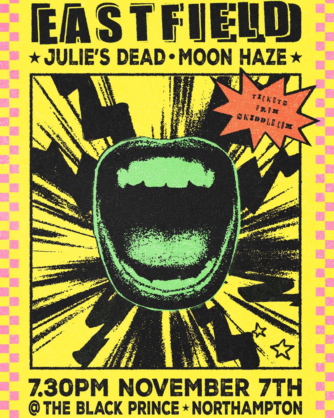 Friday 7 November 2025 - NORTHAMPTON The Black Prince. 15 Abington Square, NN1 4AE. Eastfield and Julie's Dead and Moon Haze. 7.30 - 10.30pm. Tickets £9: https://www.skiddle.com/whats-on/Northampton/The-Black-Prince/Eastfield--Julies-Dead/41323748/ | ![]() |