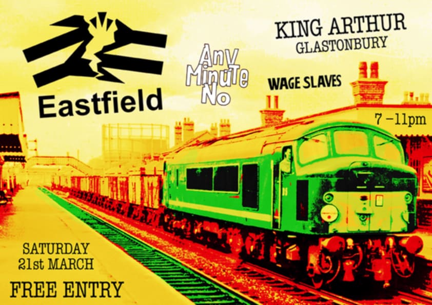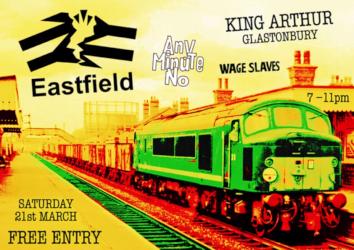 Saturday 21 March 2026 - GLASTONBURY King Arthur. 31-33 Benedict Street, BA6 9NB. Eastfield, Any Minute No and Wage Slaves. 7-11pm. Free entry. | ![]() |