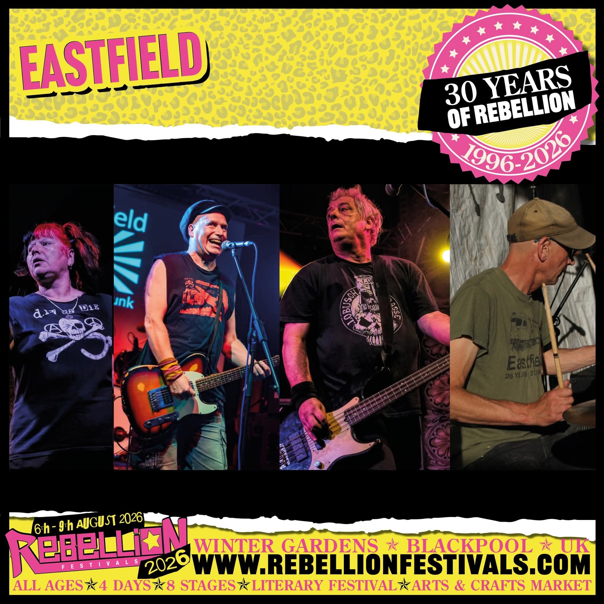 Thursday 6 to Sunday 9 August 2026 - REBELLION FESTIVAL. The Winter Gardens, Church Street, Blackpool, Lancashire FY1 1HL. Both Eastfield (full band) and Jessi solo playing at some point over the weekend. Details to follow. www.rebellionfestivals.com | ![]() |